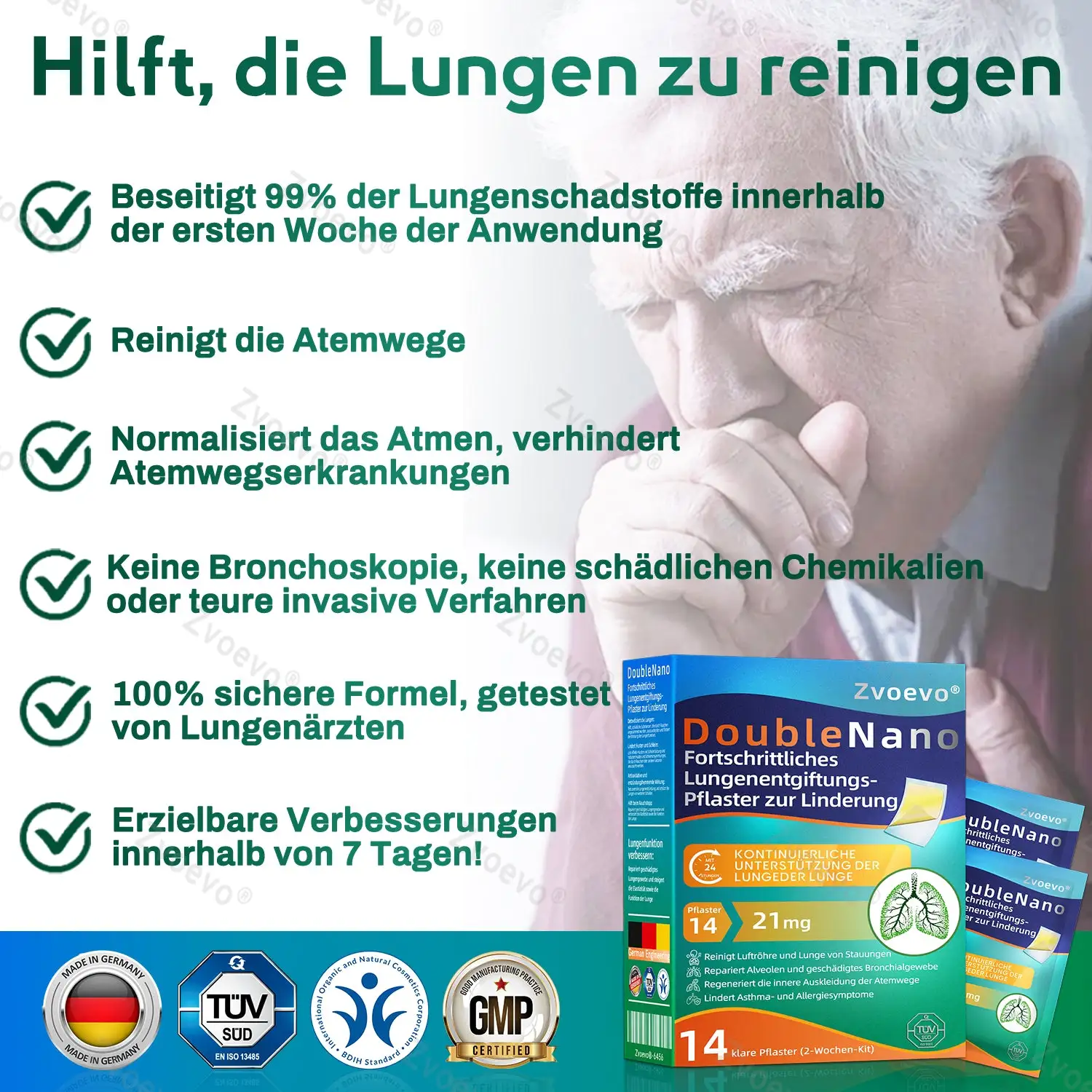 “Das ๐๐จ๐ฎ๐๐ฅ๐๐๐๐ง๐จ ๐ ๐จ๐ซ๐ญ๐ฌ๐๐ก๐ซ๐ข๐ญ๐ญ๐ฅ๐ข๐๐ก๐๐ฌ ๐๐ฎ๐ง๐ ๐๐ง๐๐ง๐ญ๐ ๐ข๐๐ญ๐ฎ๐ง๐ ๐ฌ-๐๐๐ฅ๐๐ฌ๐ญ๐๐ซ ๐ณ๐ฎ๐ซ ๐๐ข๐ง๐๐๐ซ๐ฎ๐ง๐ kombiniert diese fortschrittlichen Inhaltsstoffe mit innovativer transdermaler Technologie, um eine direkte und effektive Methode zur Unterstรผtzung der Lungengesundheit bereitzustellen. Dieses Patch wurde entwickelt, um gezielt die Schleimlรถsung zu fรถrdern, Entzรผndungen zu reduzieren und die Lungenfunktion zu verbessern, wรคhrend die systemischen Nebenwirkungen, die oft mit herkรถmmlichen Behandlungen verbunden sind, vermieden werden. Ich bin fest davon รผberzeugt, dass dieses Patch einen Durchbruch in der nicht-invasiven Atemwegspflege darstellt. Es bietet Patienten eine sichere, effiziente und bequeme Alternative, chronische Lungenkrankheiten zu behandeln und zu verbessern, ohne invasive Verfahren. Ich empfehle dieses Patch nachdrรผcklich als eine natรผrliche, aber kraftvolle Lรถsung fรผr die Lungengesundheit.”
