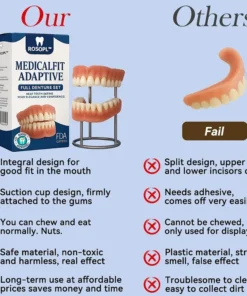 Simply place the denture in warm water to soften it, insert it into your mouth, and let it conform to your oral structure. Within minutes, the denture molds to your unique shape, creating a snug, secure, and comfortable fitโno adhesives, no dentist visits, no adjustments required.
