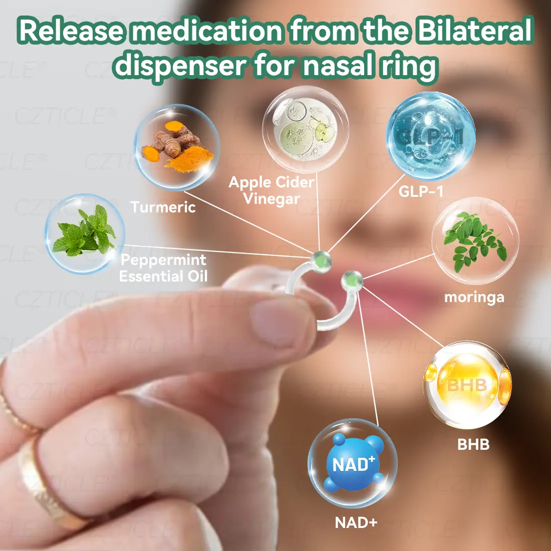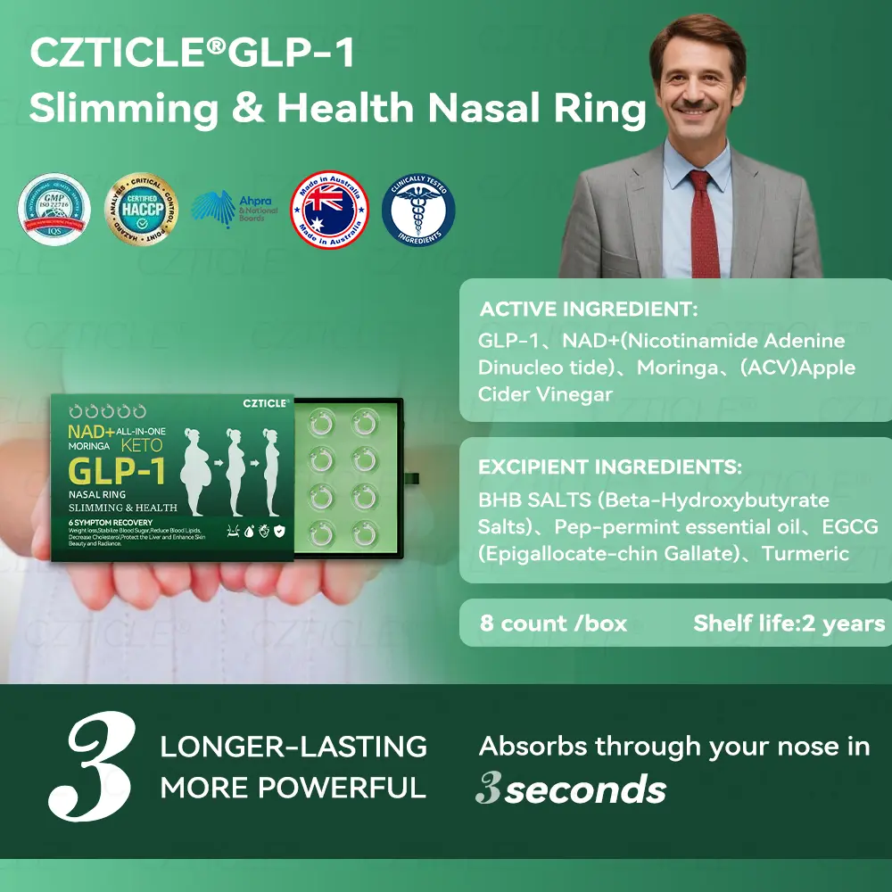 The Super Concentrated Nasal Ringย contain and NAD+. It works by mimicking the action of Glucagon-like Peptide-1 (), promoting insulin secretion, inhibiting glucagon secretion, and delaying gastric emptying, which helps control blood sugar levels and aids in weight loss. NAD+ (Nicotinamide Adenine Dinucleotide) supports cellular energy production, enhances metabolic functions, and may contribute to overall well-being.