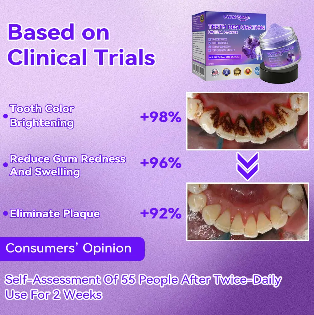 ๐๐จ๐ซ๐ฆ๐จ๐ซ๐ง๐ยฎ ๐๐๐๐ญ๐ก ๐๐๐ฌ๐ญ๐จ๐ซ๐๐ญ๐ข๐จ๐ง ๐๐ข๐ง๐๐ซ๐๐ฅ ๐๐จ๐ฐ๐๐๐ซ utilizes the natural healing properties of mineral elements like hydroxyapatite combined with powerful herbal ingredients. These powerful ingredients work together to enhance gum health and strengthen tooth enamel for complete oral care.