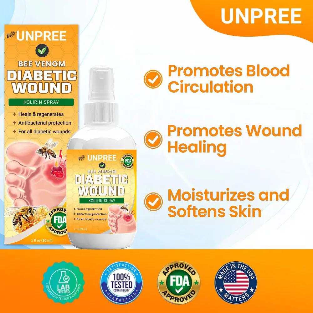 As a healthcare professional specializing in diabetes management, I highly recommend UNPREE™ Bee Venom Diabetic Wound Kolirin Spray for its outstanding ability to promote healing and prevent infections. This versatile cream is effective not only for foot ulcers but also for cuts, scrapes, and ulcers on other parts of the body, offering comprehensive care and support for diabetic patients.