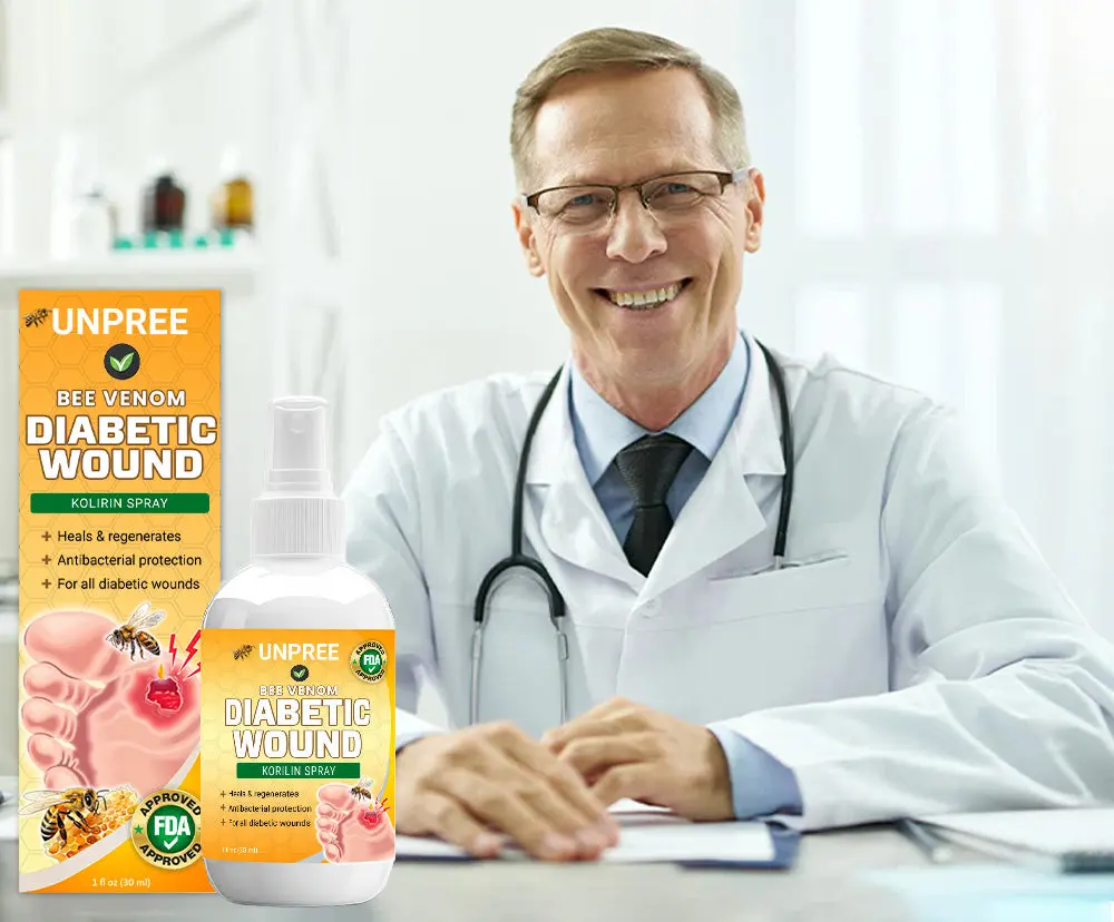“Since developing diabetes, my small wounds always healed very slowly. After using UNPREE™ Bee Venom Diabetic Wound Kolirin Spray, the healing process has significantly accelerated, and the pain has reduced. I no longer worry about infections and complications. This product has really helped me a lot.” – Sarah Thompson