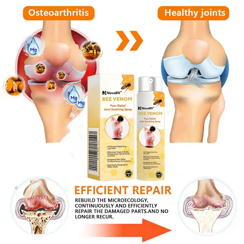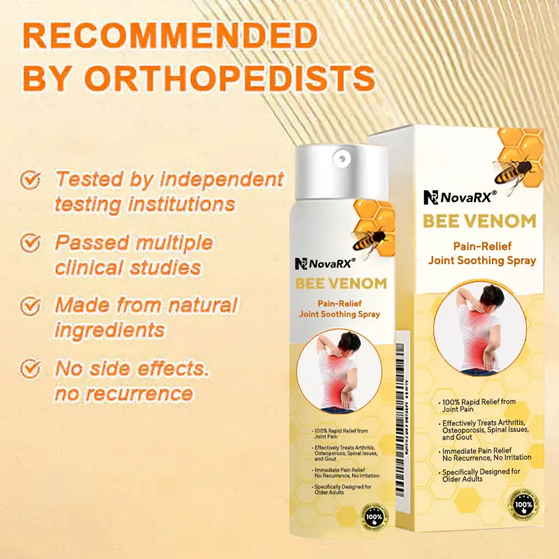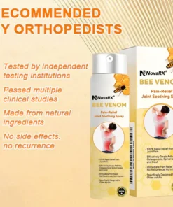 NovaRX® Bee Venom Pain-Relief Joint Soothing Spray This product is certified and recommended by . meeting their high standards to effectively relieve pain and promote bone health. Approved by orthopedic doctors. it relieves pain within 5 minutes. restores joint mobility in 7 days. and significantly improves arthritis symptoms in 4 weeks. Choose our NovaRX® Bee Venom Pain-Relief Joint Soothing Spray and enjoy reliable results and a pleasant experience with confidence.