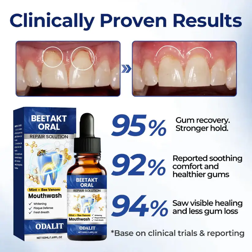 ODALIT™ Oral Repair Solution provides lasting oral protection by using the potent antioxidants naturally present in bee venom to neutralize harmful free radicals. This helps maintain strong, resilient gums, supports healthier teeth, and shields the mouth from ongoing damage.