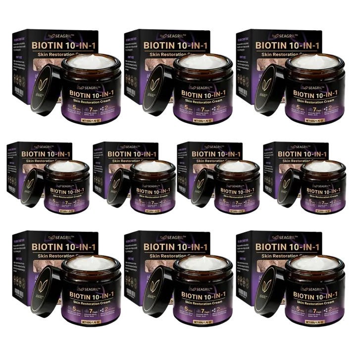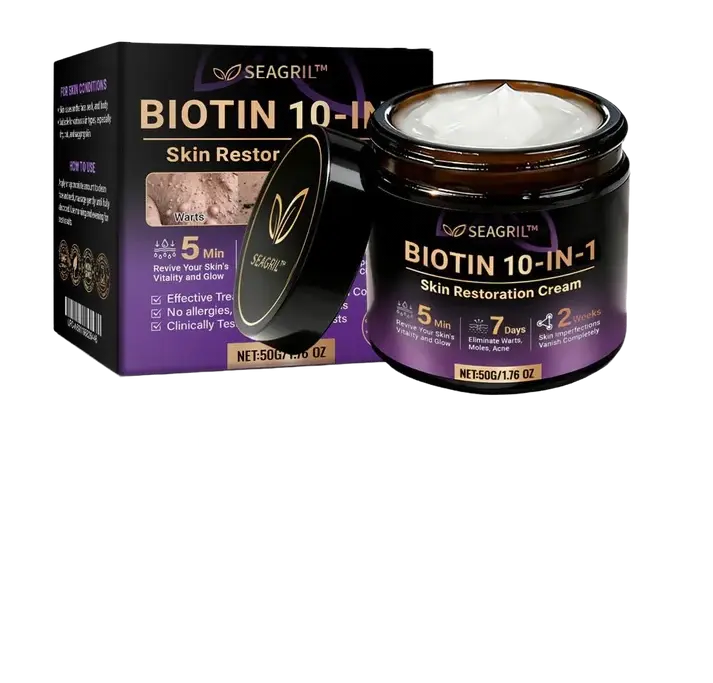 In response, SEAGRIL® Biotin 10-in-1 Skin Restoration Cream was scientifically developed under rigorous standards. Its formula combines the restorative power of natural biotin and collagen, synergized with hyaluronic acid, vitamin C, centella asiatica, and over ten other potent bioactive ingredients. Together, they deliver multi-dimensional care — from deep hydration and barrier repair to anti-inflammatory relief, itch control, metabolic renewal, tissue restoration, and anti-aging nourishment. Clinically validated and produced in GMP-certified facilities compliant with U.S. and EU safety standards, this cream offers a safe, effective, and drug-free multi-repair skincare solution for dryness, inflammation, irritation, and signs of aging — restoring comfort, resilience, and lasting skin health.