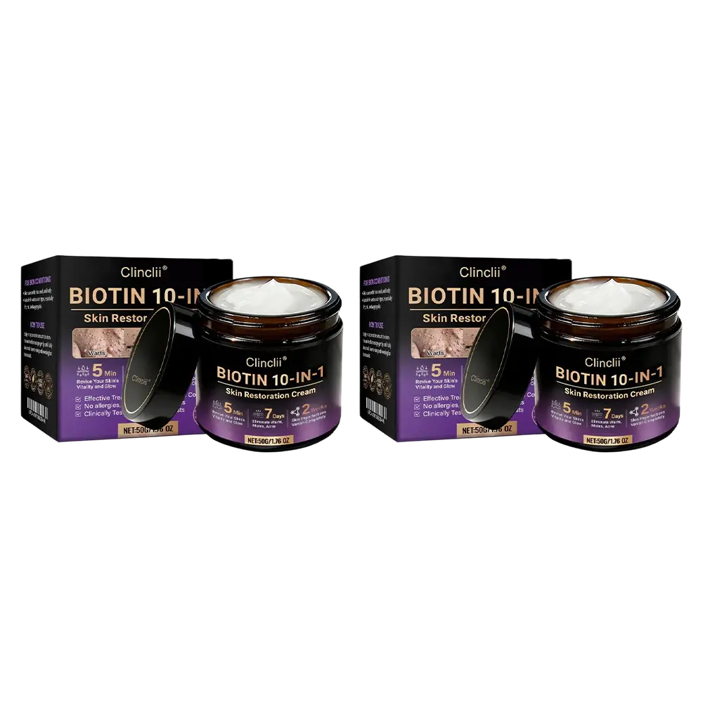 Clinically tested by dermatology experts. the Clinclii® Biotin 10-in-1 Skin Restoration Cream features a revolutionary. natural formula with triple-strength upgrades. Clinically noticeable improvements in just 7 days — no side effects or irritation.