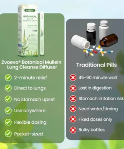 But what if there’s a breakthrough approach that works in 2 minutes instead of 90 minutes? Zvoevo® Botanical Mullein Lung Cleanse Diffuser’s revolutionary nasal inhalation technology delivers powerful mullein extract directly to your respiratory system within 2 minutes – bypassing your digestive system entirely and reaching your lungs where you need it most.