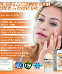 Endorsed by Dr. Sophia L Williams, a board-certified dermatologist with over 10 years of expertise in skincare,flysmus™ Botox Bee Venom Firming Serum Stick comes highly recommended. This exceptional product provides an ideal remedy for an array of skin issues, including neck lines, sagging arms, drooping breasts, chest discomfort, stretch marks, cellulite on the abdomen, thighs, and buttocks, as well as sagging buttocks, among others. Importantly, it achieves these results without any adverse side effects. Crafted entirely from 100% natural plant extracts, thiscream is suitable for all skin types, including sensitive skin.
