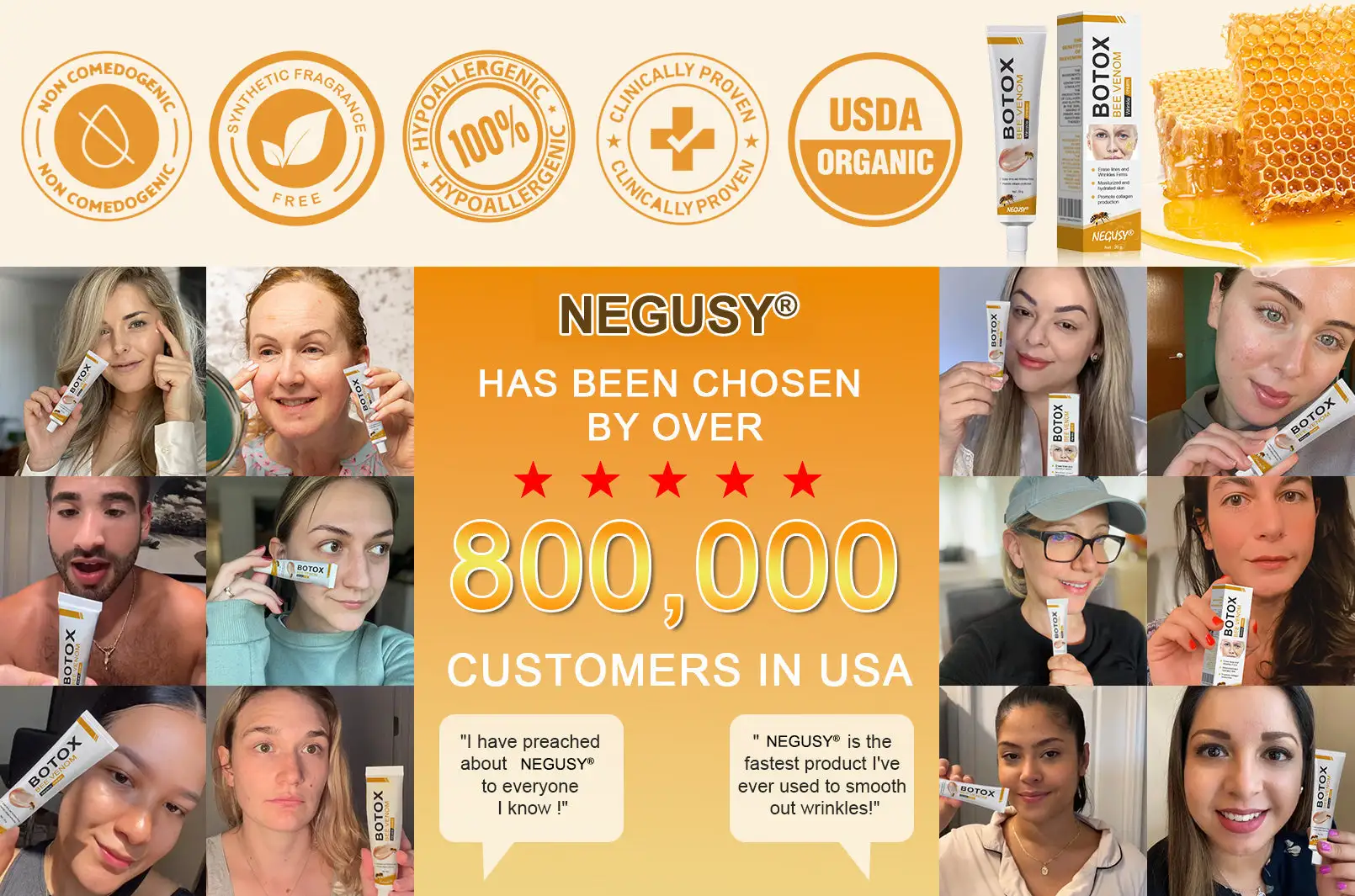 Are you tired of ineffective skincare and wasting money on expensive products and long treatment times? Have previous skincare products left you feeling frustrated? It’s time to regain your confidence with NEGUSY® Botox Bee Venom Wrinkle Cream!