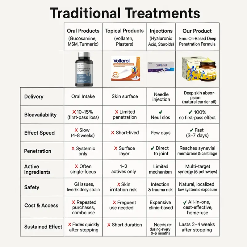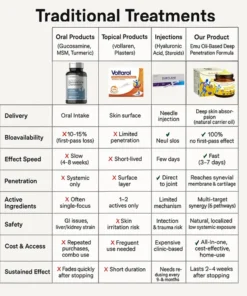 Clinical Evidence: Head-to-head studies show LOTMAY® users experience 300% faster pain relief compared to oral supplement users. While oral glucosamine/chondroitin combinations show modest improvements in 30-40% of users after 12 weeks, LOTMAY® demonstrates significant pain reduction in 87% of users within the first week of use.