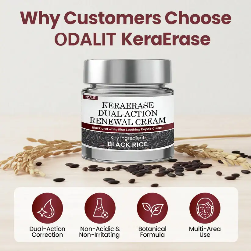 That’s why we createdODALIT® KeraErase Dual-Action Renewal Cream — a gentle, plant-powered formula that softens raised bumps, breaks down deep keratin buildup, and brightens stubborn dark spots— all without acids, stinging, peeling, or irritation