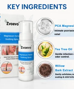 Zvoevo® PCA Magnesium Repair Spray is a gentle formula designed for daily use, highly praised for its deep soothing and effective healing properties. It delivers intense hydration to relieve dryness and tightness caused by conditions like psoriasis and eczema. Enriched with natural antioxidants and anti-inflammatory ingredients, it helps regulate inflammation, promotes healthy skin cell renewal, and accelerates the natural repair process of damaged skin. Safe and suitable for all sensitive and problem-prone areas of the body, including intimate regions.