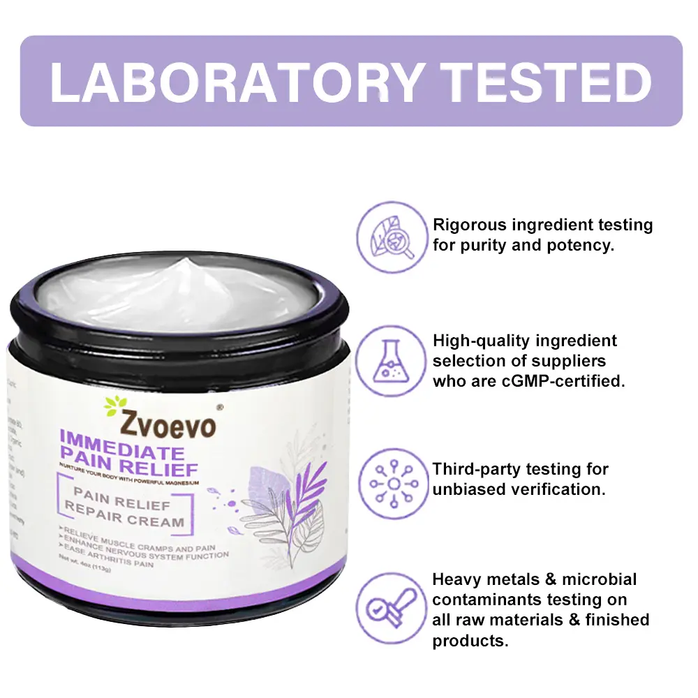 Zvoevo® Magnesium Pain Relief Cream is clinically tested and formulated in accordance with quality standards recognized by the U.S. Food and Drug Administration ().
