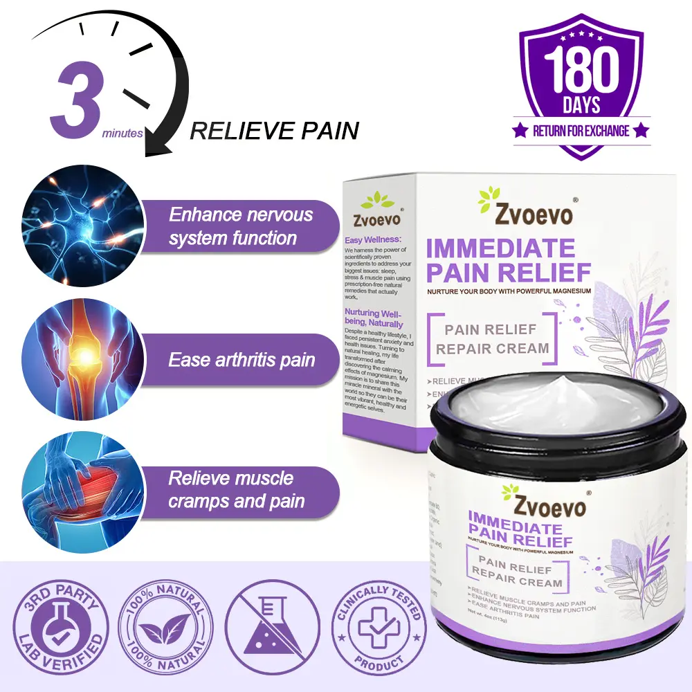 Then our Zvoevo® Magnesium Pain Healing Bone Cream is perfect for you! We have worked closely with top experts in pain management and skin repair to develop a revolutionary product that harnesses the powerful pain-relieving and healing abilities of Magnesium. Zvoevo® Magnesium Pain Healing Bone Cream the perfect booster to help you combat various pains and discomforts, allowing you to live a pain-free, healthy life and enjoy the comfort and vitality of every day.