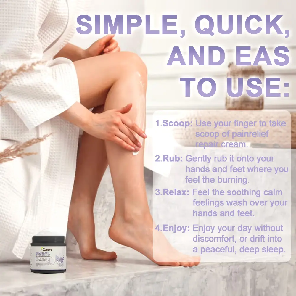 Using Magnesium Pain Healing Bone Cream is super easy. Just put it on your feet or legs where it hurts. The magnesium goes straight to work, helping to improve blood flow and get oxygen to your nerves.