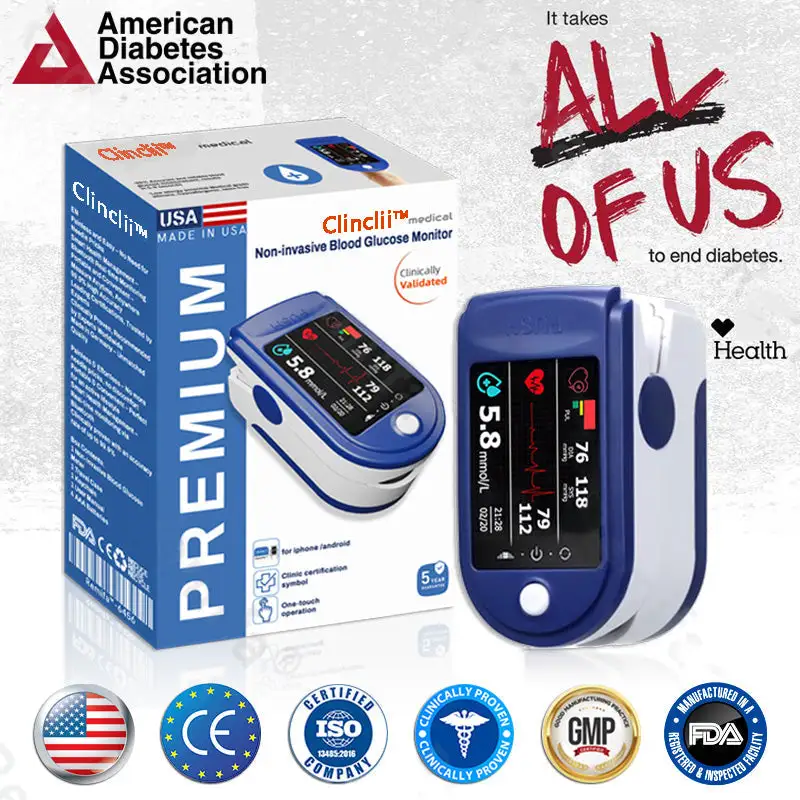 The Clinclii™ non-invasive blood glucose monitor has obtained . ADA. CE. ISO 13485. RoHS. and GMP certifications. ensuring the accuracy and reliability of its measurements in compliance with global medical device standards. The device has undergone clinical testing and provides precise and stable monitoring results. With these numerous certifications. Clinclii™ is available for sale in the United States and worldwide. so you can purchase and use it with confidence.