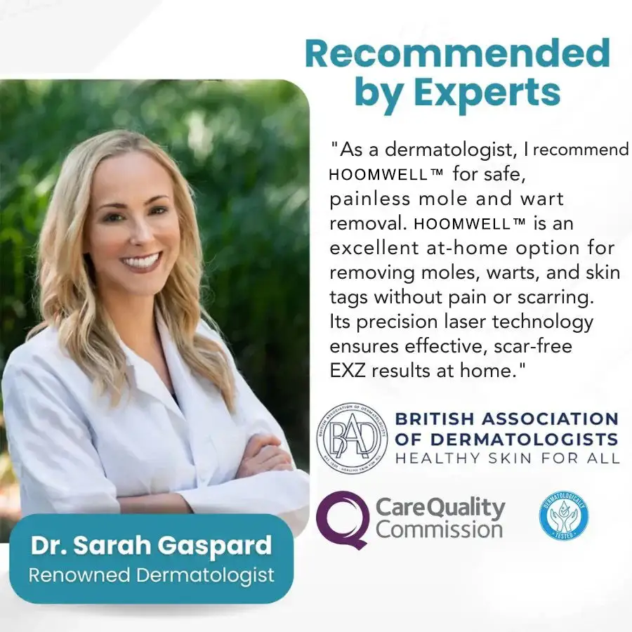 The UK’s leading dermatologists consider HOOMWELL™ to be a breakthrough in at-home skin therapy. Backed by clinical studies and top dermatology associations, regular use of HOOMWELL™ has been proven to be effective in reducing moles, warts, dark spots and skin blemishes. Experts recognize HOOMWELL™ as a safe, non-invasive alternative to costly professional treatments, making high quality skincare accessible to all.