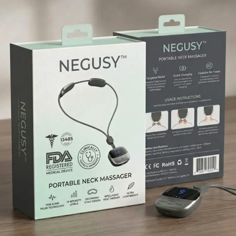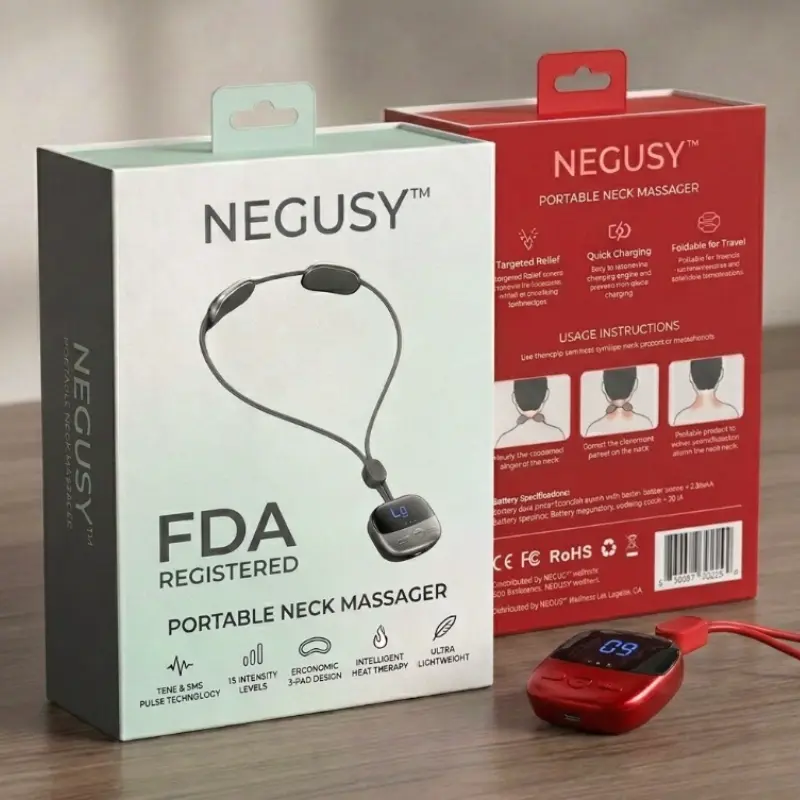 Our portable neck massager reduces local swelling by using Heat to widen the blood vessels & stimulate the lymphatic system. This gives EMS the ability to boost lymphatic drainage by rhythmically contracting the muscles, making them act like pumps that squeeze the lymph vessels running through & around them, pushing waste products and excess fluid out of the neck area, thereby reducing swelling & neck hump.