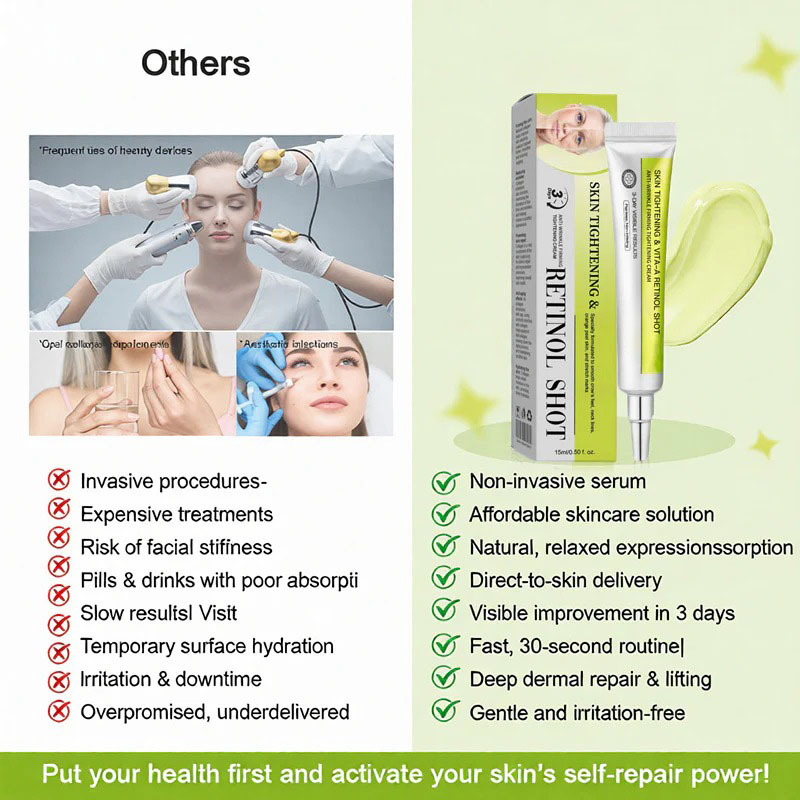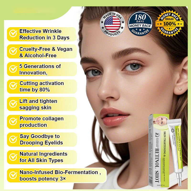 💡Powered by Skin Tightening-like Peptides & Retinol Shot Technology, this breakthrough serum visibly lifts, firms, and smooths your skin — all without needles or downtime.