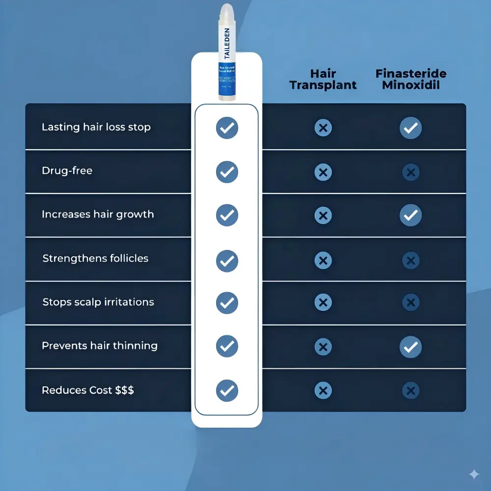 TAILEDEN’s proprietary formula is crafted to help reduce hair thinning and is clinically validated to support a healthier scalp environment.