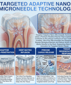 - 1. Deep Lesion Penetration: The nanoscale microneedle array bypasses biological barriers that traditional toothpastes cannot reach. It delivers a high concentration of the GSK-3 inhibitor (Tideglusib) directly into deep dentin lesions.