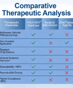 TAILEDEN® VeinEase represents the first commercially available transdermal phytotherapy system specifically designed to address venous valvular insufficiency through localized botanical intervention. Unlike systemic treatments that dilute active compounds throughout the circulatory system or topical applications that cannot penetrate the dermal barrier, our microneedle delivery system ensures concentrated therapeutic compounds reach the target tissue with minimal systemic exposure.
